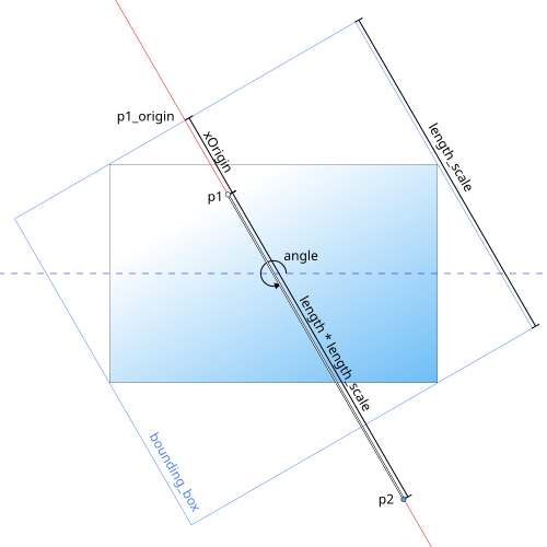 bboxisp1_origin. xOriginis the distance betweenp1_originandp1of the gradient at the given angle.yOriginis always zero, because for linear gradients moving perpendicular to theanglehas no effect.lengthdefines the distance betweenp1andp2of the gradient (a length of 1 covers the entire shape at the given angle).angleis applied as a gradient transformation at the end.